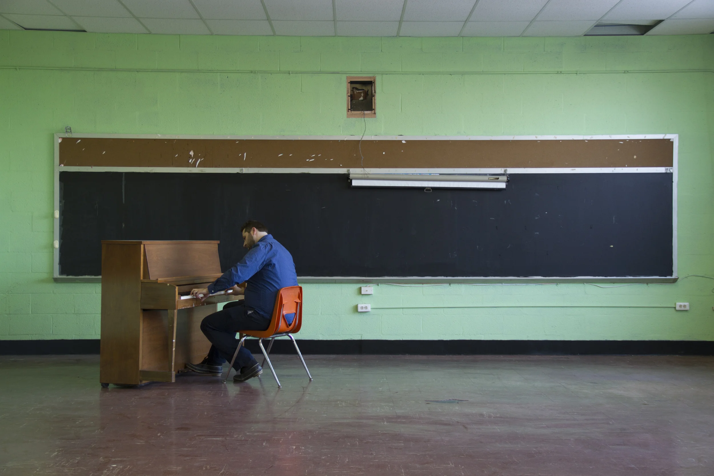 Over the course of two months I had access to a former elementary school to shoot photo and video in. These images depict my Large Child character playing alone around the school.